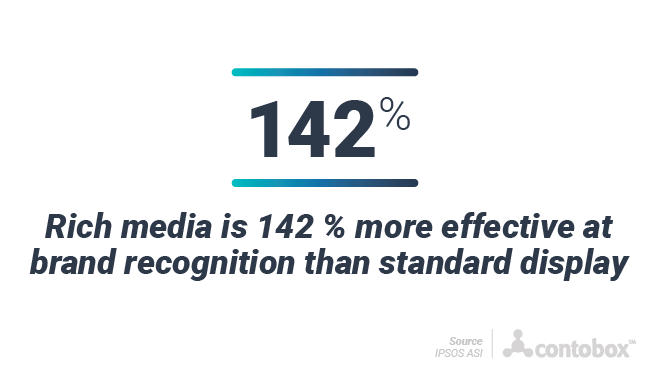 An Ipsos ASI study on the effectiveness of high-impact, interactive creative over standard display showed some staggering results. These units were 142 percent more effective at fostering brand recognition, 124 percent more effective at unaided brand recall, 78 percent more likely to make consumers want to learn more about a product or brand, and 72 percent more likely to make users want to tell friends and family about it.